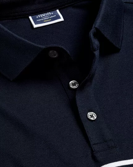 Comfort is a top priority – the fabric blends breathable cotton with a hint of stretch, so movement is easy. The superior cotton yarns are extra-durable, making this a style you can return to again and again. Our black pique polo is an essential addition to any smart-casual wardrobe. Try it with tailoring to give formal looks a laid-back edge or team with chinos or cords on weekend days.