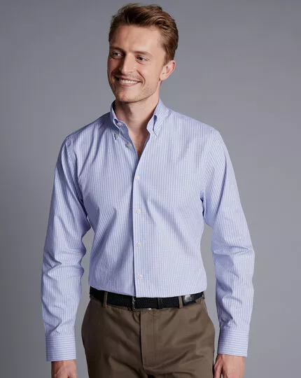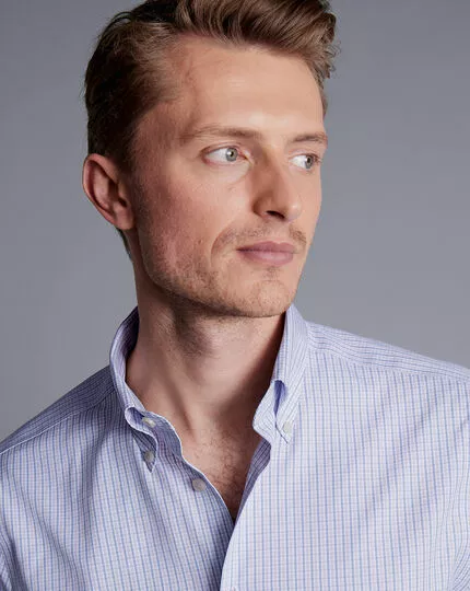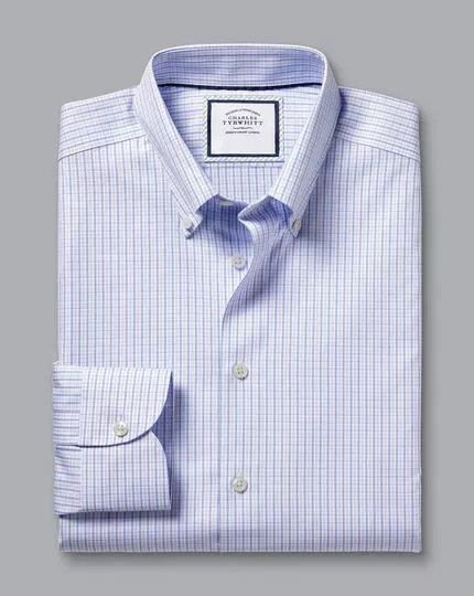 CHARLES TYRWHITT Button-Down Collar Non-Iron Oxford Twin Check Shirt – Lilac P