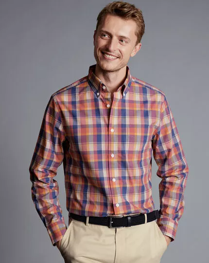 Bring a warm burst of color to your suiting with this burnt orange style. Its combination of rusty reds, dusty browns and burnished oranges looks as cheerful layered under a winter jacket as it does with the sleeves rolled up in summer.