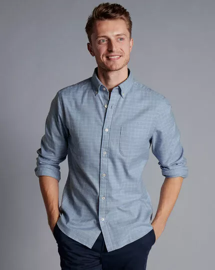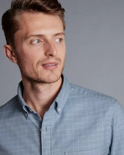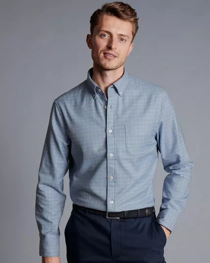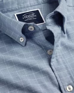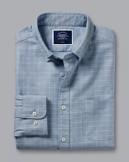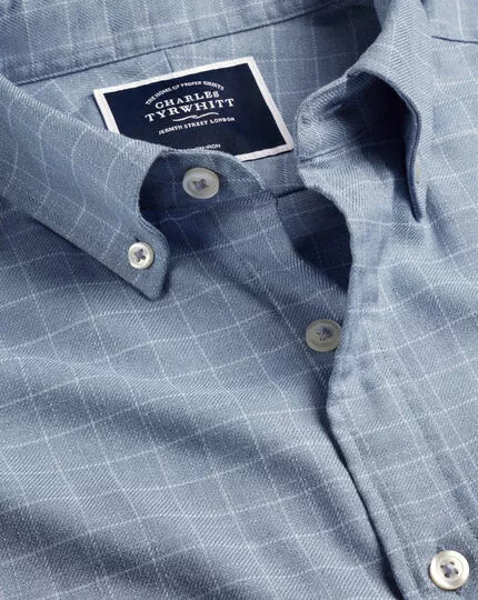 CHARLES TYRWHITT Button-Down Collar Non-Iron Twill Windowpane Check Shirt – Steel B