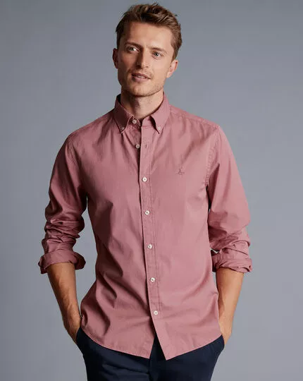 CHARLES TYRWHITT Button-Down Collar Washed Fine Twill Shirt – Pink