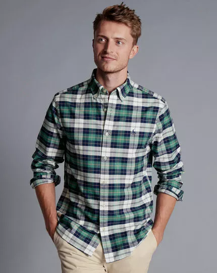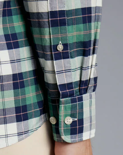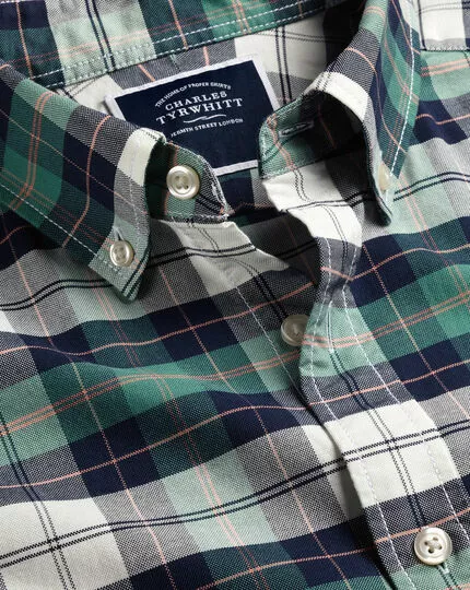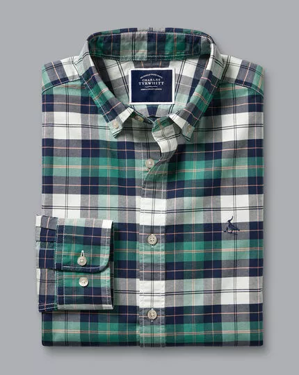 CHARLES TYRWHITT Button-Down Collar Washed Oxford Check Shirt – Teal Green