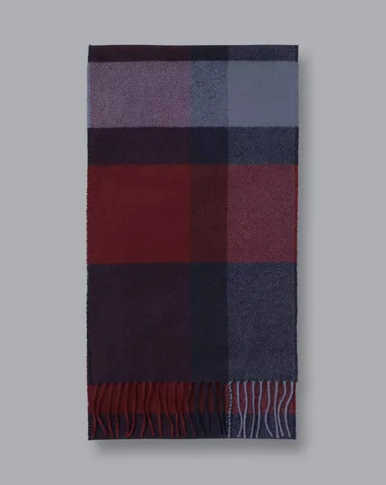 CHARLES TYRWHITT Cashmere Check Scarf – Burgundy & Navy