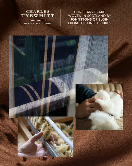 This scarf, measuring 165cm by 25cm, is made from pure cashmere in fine micron fibers for incredible softness, spun and woven in Scotland. It is lightweight yet warm, and comes in a versatile design that can be worn with a range of cold-weather outfits. Wear for extra warmth in your autumnal looks, add a pleasant touch to a black tie ensemble, or give it as a luxurious gift.