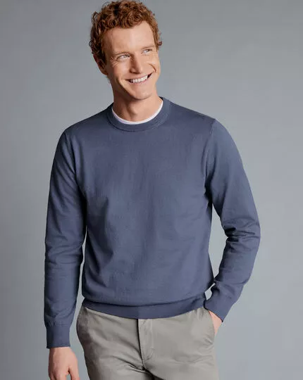 Our new combed cotton sweaters look like knitwear while feeling breathable and light on the skin. We’ve used 100% cotton for an easy breezy layer you can throw on when you need just a little extra warmth. The cotton has been combed to remove excess texture for a compact, smooth finish, and we’ve added a garment wash for extra softness. Designed with a classic crew neck, you can really wear this layer from work to the weekend.
