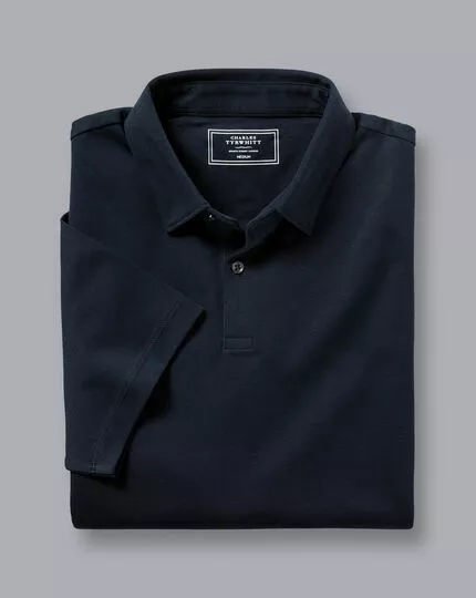 CHARLES TYRWHITT Combed Cotton Polo – Dark Navy