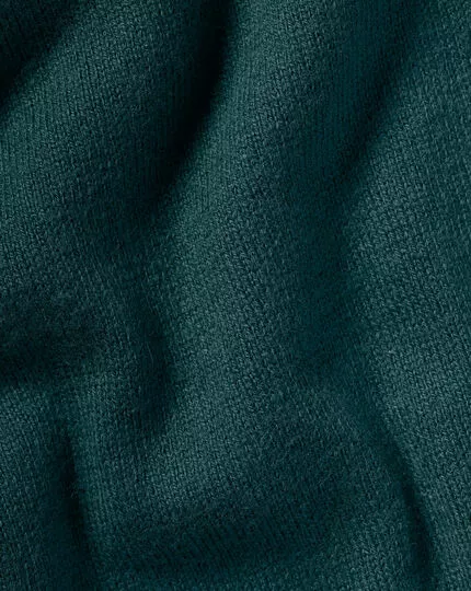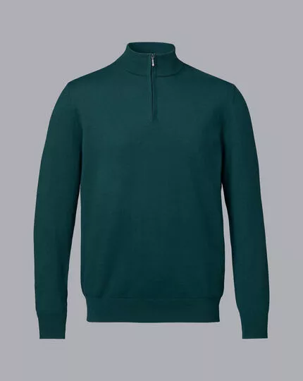 CHARLES TYRWHITT Combed Cotton Zip Neck Sweater – Teal Green