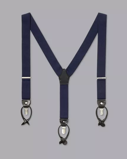 Tyrwhitt suspenders are made from elasticated cloth, and are adjustable for a comfortable fit. As combination suspenders , they can be worn with any kind of pants, regardless of whether they have suspender buttons or not. Clip them on for a streamlined front to your look, or simply to stand out with a fun and unique style.