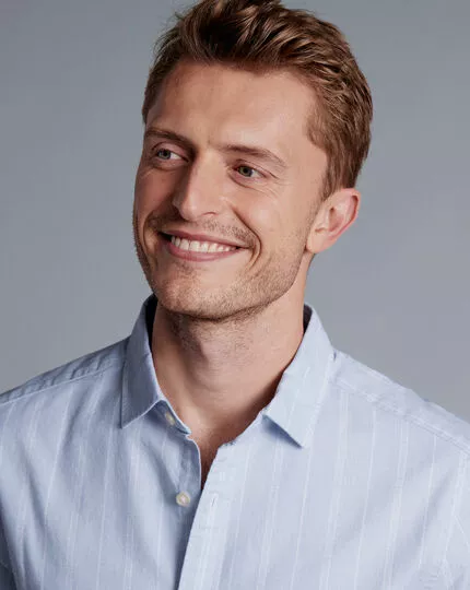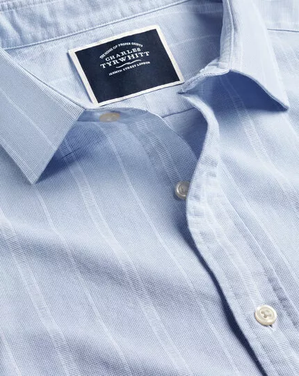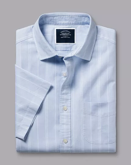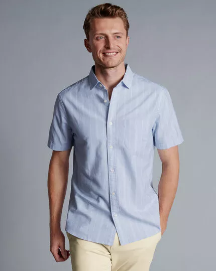 CHARLES TYRWHITT Cotton Linen Stripe Short Sleeve Shirt – Sky B