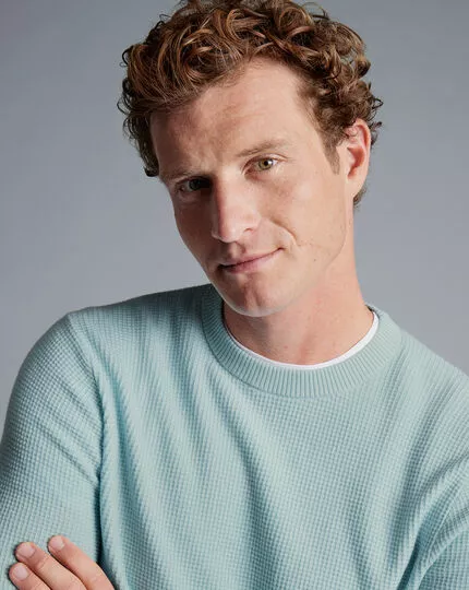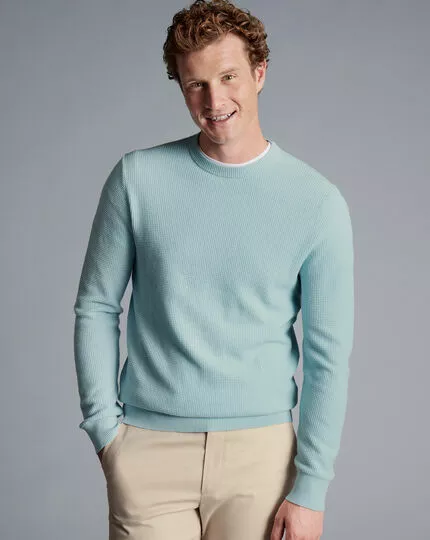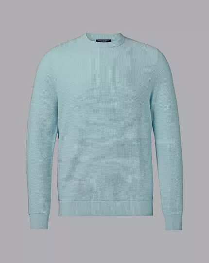 CHARLES TYRWHITT Cotton Merino Waffle Crew Neck – Spearmin