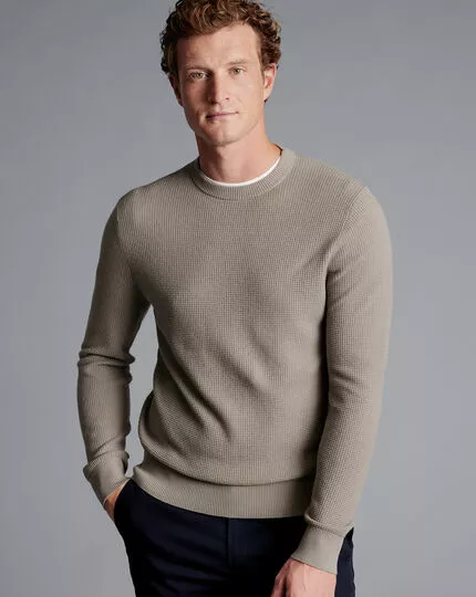 CHARLES TYRWHITT Cotton Merino Waffle Crew Neck – T