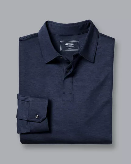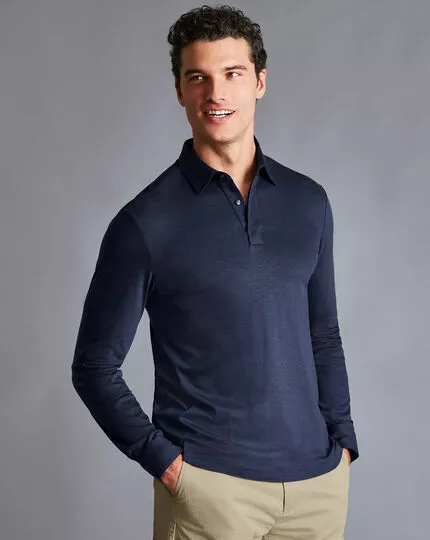 We’ve made this long-sleeved polo from a mix of cotton and TENCEL™, which creates a durable cloth with a luxurious sheen and a smooth surface. TENCEL™ fibres naturally absorb moisture, so you’ll feel cool and comfortable throughout the day. Easy to dress up or down, this classic top can be worn with linen shorts on laid-back days or with our smart chinos for work.