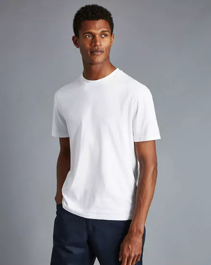CHARLES TYRWHITT Cotton Tyrwhitt T-Shirt - Wh -Charles Tyrwhitt Shop JET0006WHT MODEL FRONT