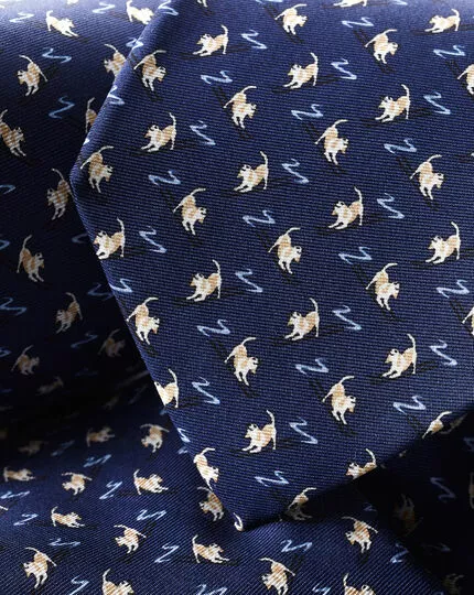 What could be more sophisticated than a pure silk tie? How about one that features a unique print that has been expertly created by our in-house designers? We’ve added a secret recovery loop at the tail end – so the point stays crisp – and there’s a handy keeper loop on the reverse. As for subtle texture and lustrous sheen, this style offers both. You just have to complete the picture with a neatly tied knot.Â