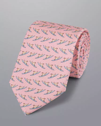 CHARLES TYRWHITT Dog On Surfboard Motif Silk Tie – Pink