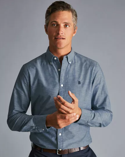 Whether you’re sitting pitchside or watching from your sofa, our comfort-led designs have your match-day looks covered. This button-down shirt is crafted from pure cotton chambray in an elegant mid-blue – we’ve garment washed it for a supersoft finish, too. It’s available in a classic or slim fit, with a split back yoke that makes movement easy. Master relaxed style by adding a pair of cotton shorts, or try our smart non-iron chinos to take things to the next league.