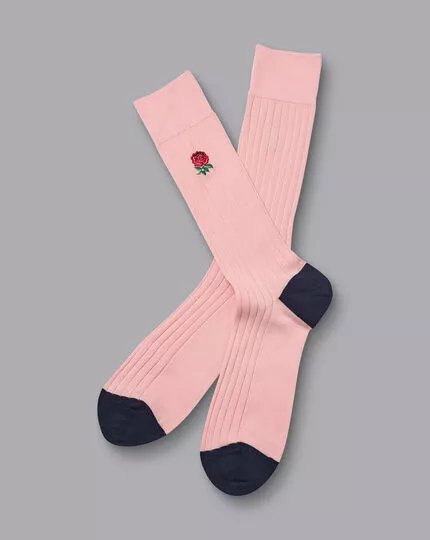 These socks have all the hard-wearing and high-performance qualities that epitomise England Rugby. With reinforced panels at the toe and heel, they’re reliably robust. Their comfortable double welt cuffs keep them securely in place no matter how hard you play. A classic navy hue and ribbed knit make this pair a versatile choice to slip easily under leather brogues or sneakers.
