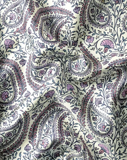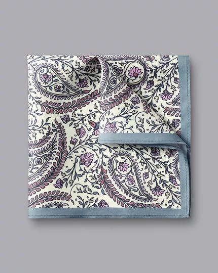 CHARLES TYRWHITT Floral Paisley Silk Pocket Square – Ivory & Steel B