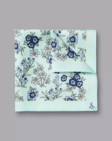 CHARLES TYRWHITT Floral Silk Pocket Square – Spearmin