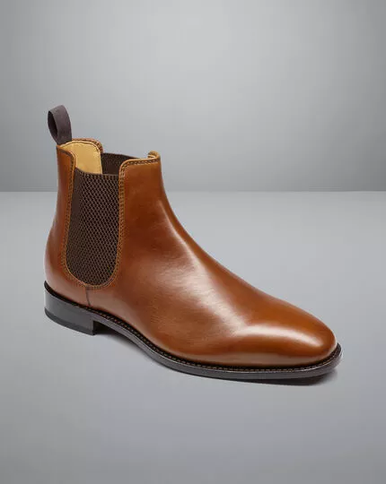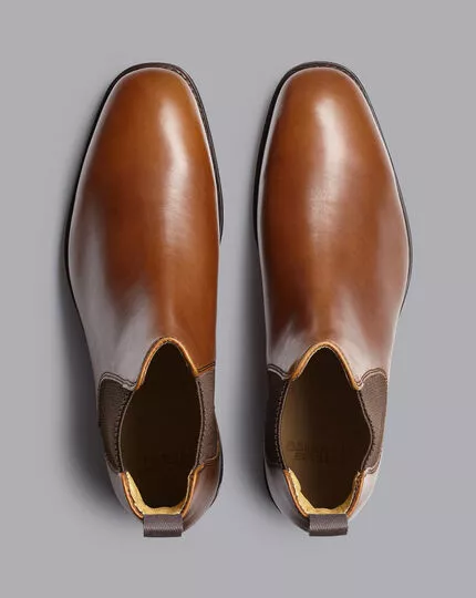 A classic Chelsea boot with elastic sides, made from 100% fine calf leather.