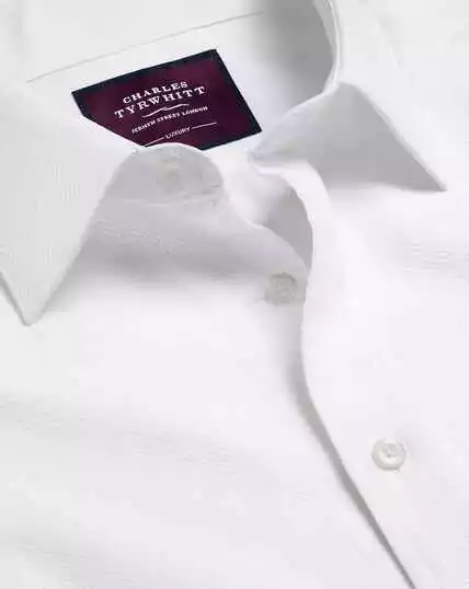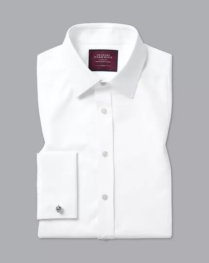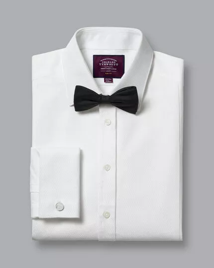 The body fabric is crafted from Egyptian cotton for a luxurious, smooth feel, in a poplin weave and with a split back yoke to allow for movement. It also has traditional evening shirt features, including a bib front in a customary Marcella weave and extra button holes for replacing the buttons with studs.