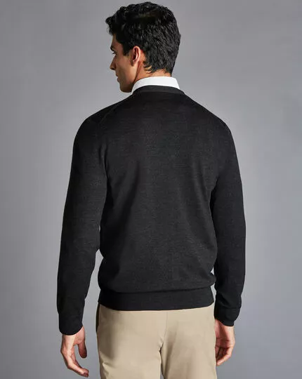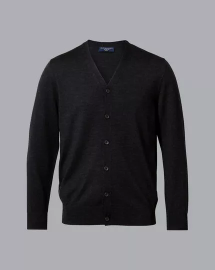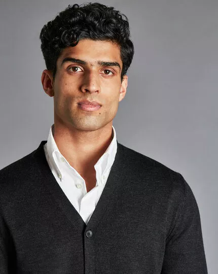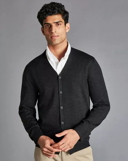 Shaped to a V-neck with a six-button fastening and ribbed hem and cuffs, this is a straightforward and failsafe cardigan; a suitable middle layer for both casual and formal looks.