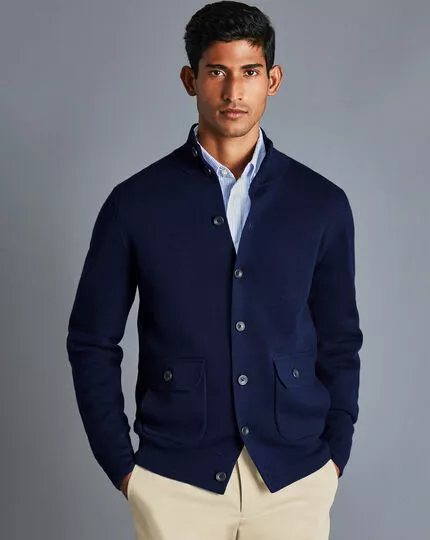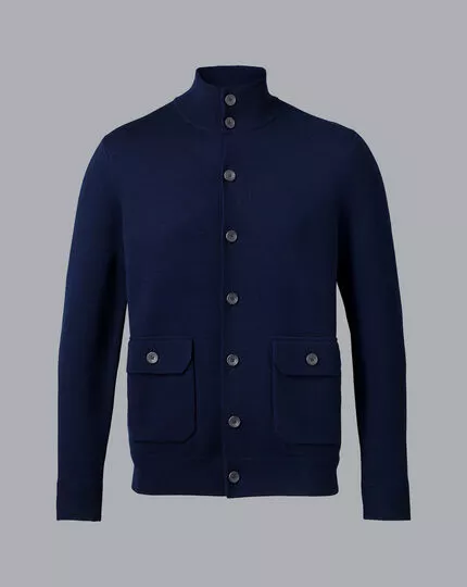 This jacket will see you through every smart-casual occasion in style. It’s crafted from mid-weight Woolmark-certified Merino wool, and garment washed for a soft and cosy finish. The funnel neck is detailed with a full button placket and you’ll find added useful side patch pockets for you to store your essentials in while on the move. As it’s a versatile layer, you can pair it with just about anything, including jeans, suit trousers and everything in between.