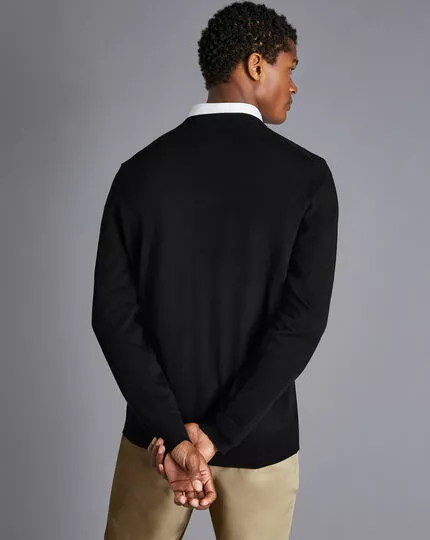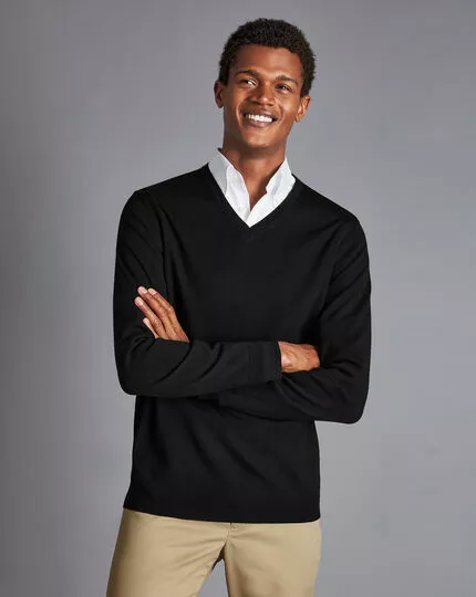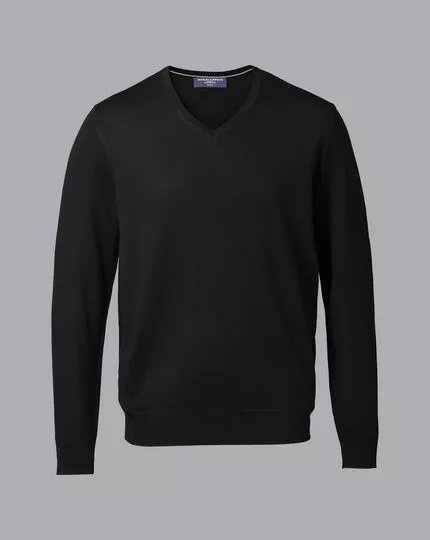 CHARLES TYRWHITT Merino V-Neck Sweater – Black