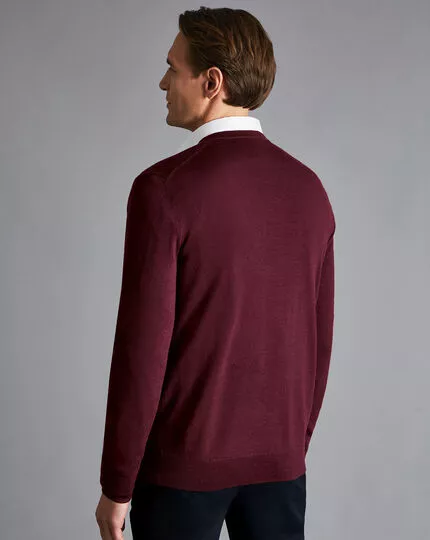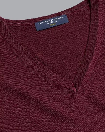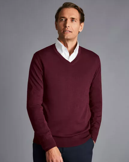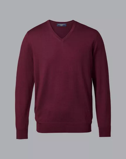 CHARLES TYRWHITT Merino V-Neck Sweater – Burgundy