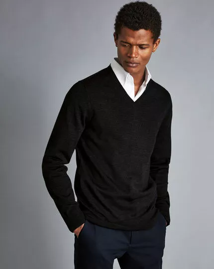 This refined-yet-casual V-neck is crafted from pure, Woolmark-certified Merino wool.