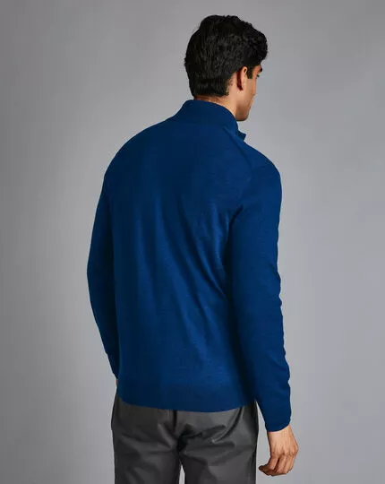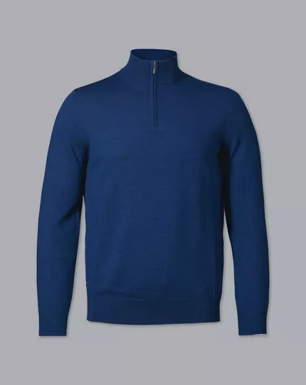 CHARLES TYRWHITT Merino Zip Neck Sweater – Royal B