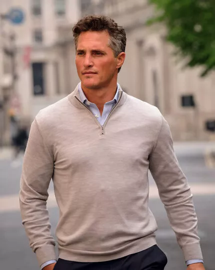 This refined-yet-casual zip neck is crafted from pure, Woolmark-certified Merino wool.