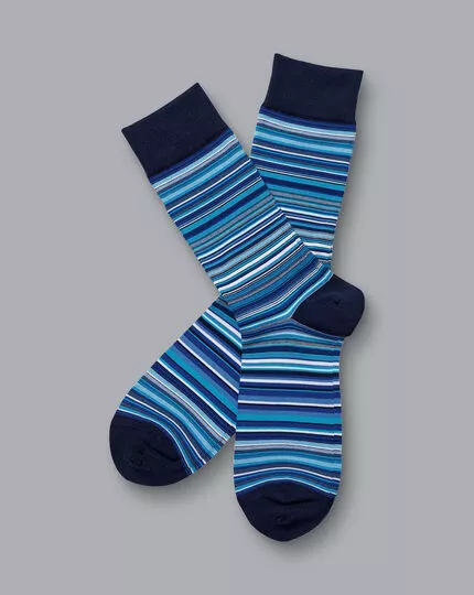 This pair of design socks has a cotton-rich blend, made in an incredibly fine knit for amazing-feeling quality. A reinforced heel and toe mean you can walk in them for miles, while the toe is seamless for extra comfort. The design is unique and colourful, allowing you to add a pop of fun and individuality to an outfit.