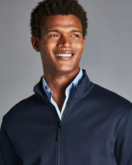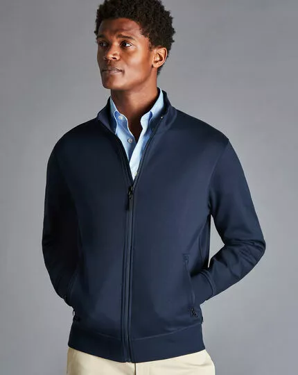 When harsh weather conditions make an appearance, reach for one of our performance layers. They’re made from pure cotton, giving them a soft and lightweight feel. The water-resistance technology and hardwearing storm-proof finish will keep you dry. We’ve created this funnel neck jacket with a nod to traditional golf wear. It’s designed in a classy navy tone that’ll pair well with a whole host of your wardrobe favorites. Have a closer look at the side seam tab – you’ll spot our  signature lapwing logo.