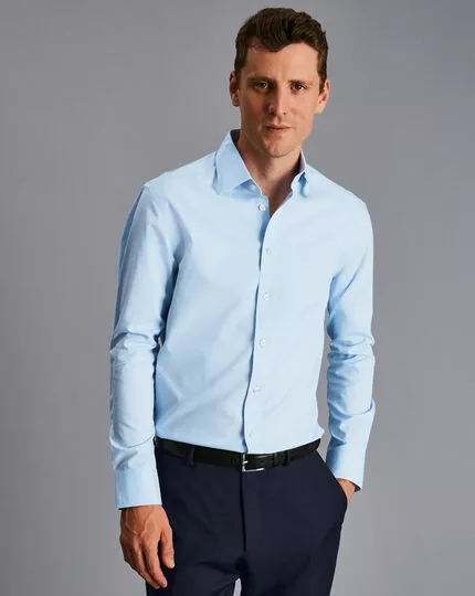This straightforward shirt is made from 100% cotton, woven in a simple poplin weave to create a crisp, smart look. It is lightweight, ideal for year-round wear whether on its own or under layers of knits and tailoring, It also features a split back yoke for movement, and is non-iron for a crease-free finish.