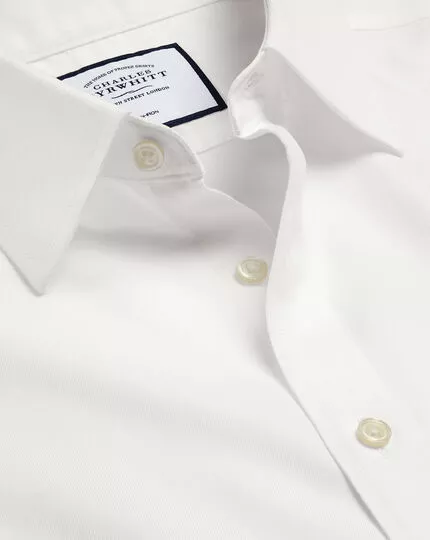 Crafted from soft and breathable cotton, this distinctive diagonal weave gives the fabric a subtle sheen and luxe drape, as well as making it hard-wearing. Our new ivory-white shade is softer than a true, pure white, for a warmer look that goes with every outfit combination you throw at it. The versatile classic collar can be styled for all dress codes, from an open-neck to smartened up with a tie. Complimentary brass collar stays ensure your collar stays crisp, and for ease of care (and a little extra sleep) we’ve added our non-iron finish.