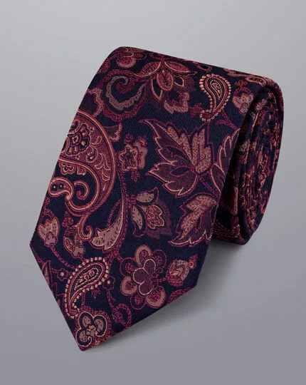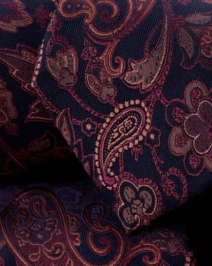 CHARLES TYRWHITT Paisley Silk Tie – Navy & Dark Pink