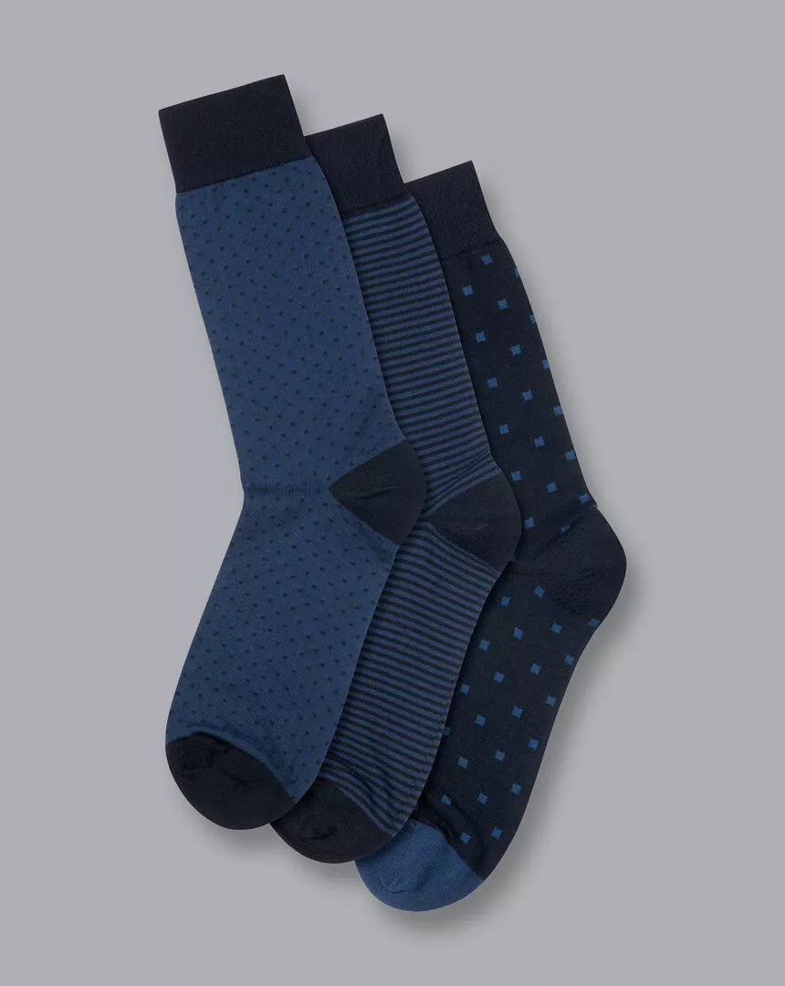 Lively prints and classic colours meet all-day comfort in these socks. Crafted from cotton-rich fibres with the perfect amount of stretch, they’re soft and breathable under brogues and trainers alike. The seamless toe is smooth against your foot, while a double welt holds them securely in place at the ankle. These socks will stay in excellent condition, wear after wear, thanks to their reinforced heel and toe.Â
