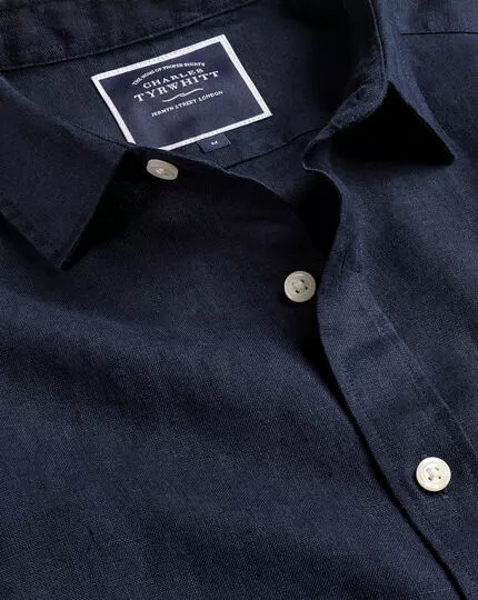 Crafted from lightweight pure linen – a naturally breathable fabric that absorbs moisture and helps you stay cool. We’ve cut this shirt to a slim fit for a streamlined finish, and a garment wash gives it a pleasingly soft feel.
