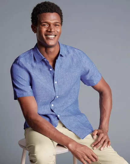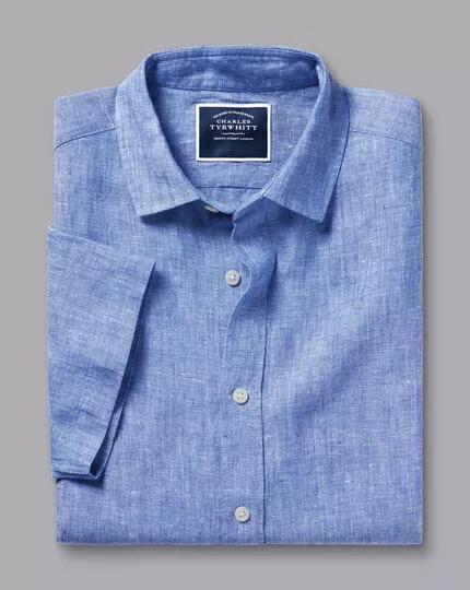 CHARLES TYRWHITT Pure Linen Short Sleeve Shirt – Cobalt B