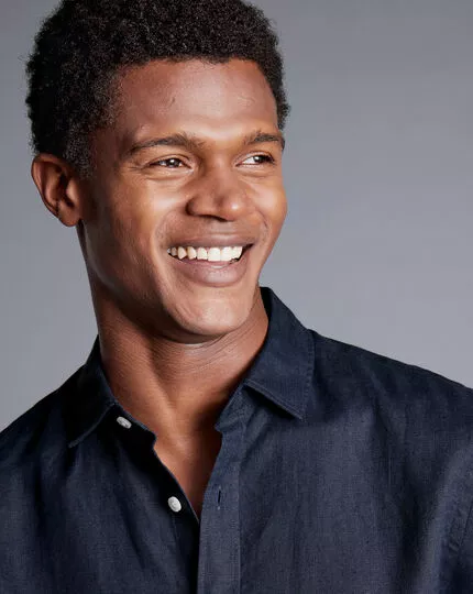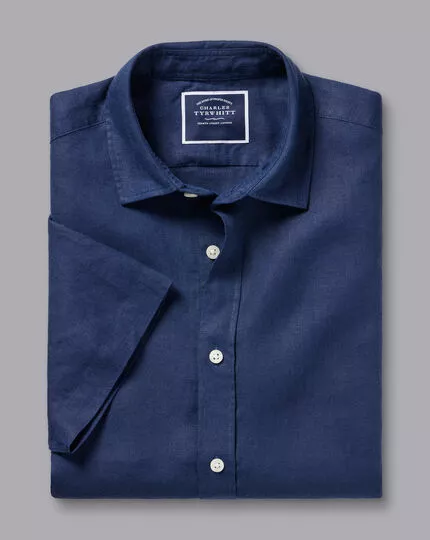 CHARLES TYRWHITT Pure Linen Short Sleeve Shirt – Navy