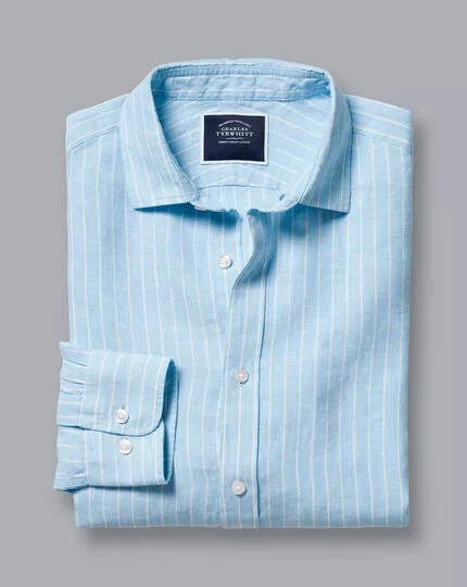 CHARLES TYRWHITT Pure Linen Stripe Shirt – Light B