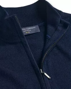 CHARLES TYRWHITT Pure Merino Full Zip-Through Cardigan – Navy