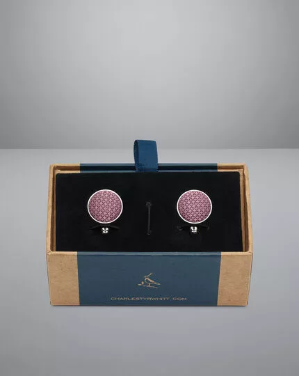 If you’ve chosen a French cuff for a formal occasion, these pink cufflinks will bring a subtle splash of colour to your outfit. The textured silk is perfectly framed by polished metal plating, with a simple circular shape that complements a range of styles. A secure swivel back holds the cufflinks neatly in place, while the plating prevents them from tarnishing with time. We’ve presented this set in a smart cufflink box.