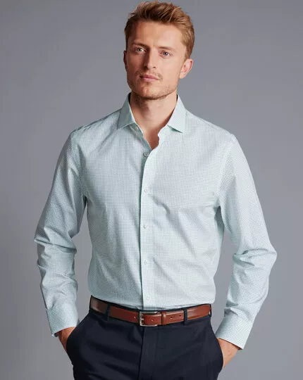 CHARLES TYRWHITT Semi-Spread Collar Non-Iron Petal Print Shirt – Aqua Green
