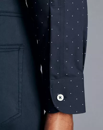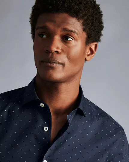 Make an entrance – and start a conversation – with a printed shirt that has plenty to say for itself. With its characterful geometric pattern, our versatile, non-iron style can be dressed up or down. Featuring navy back neck piping and contrast trimming detailing, our pure cotton makes for an airy feel and a smooth matt finish. Take a closer look at the print and choose a colour that will perfectly complement your favourite tie or knitwear.Â