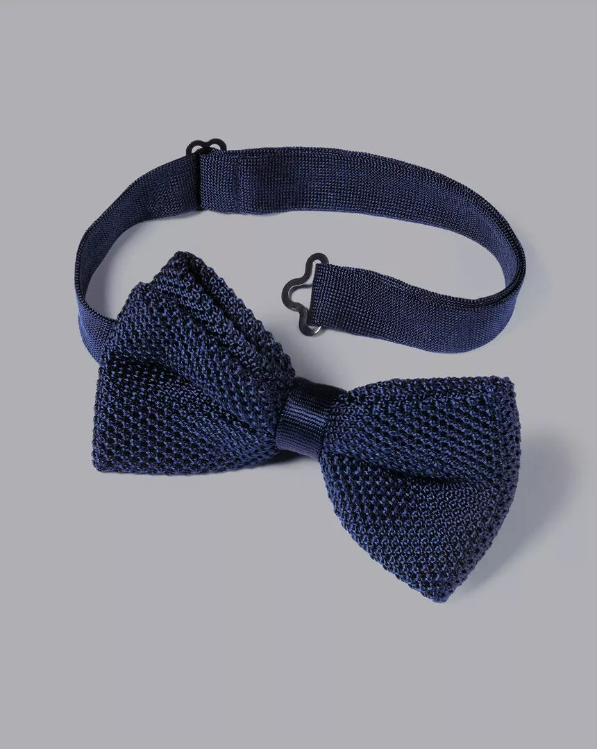 CHARLES TYRWHITT Silk Knitted Bow Tie – Navy