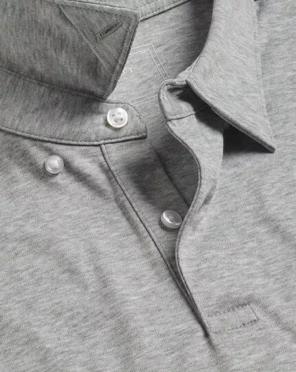 You’ll have to feel this polo to believe it. The jersey fabric is crafted from the finest cotton yarns, which are extra smooth thanks to a special mercerized wash. mercerized cotton is also more lustrous, durable and less likely to shrink, plus it retains a brighter color, wash after wash. A clean forward-point Collar has a sharp and modern look, and the concealed button-down feature delivers a neat finish.