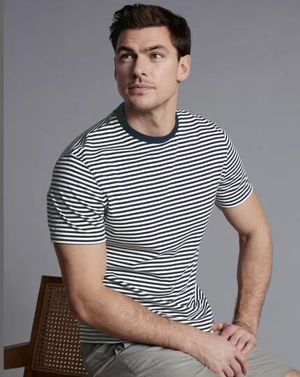 Every wardrobe needs versatile tops and our pure cotton T-shirt fits the bill perfectly. The soft jersey-knit fabric is lightweight and offers the perfect amount of stretch for a comfortable fit that keeps you looking your best. This is an option to wear on its own at the weekend, or layer under a jumper or jacket for an effortless and understated look.