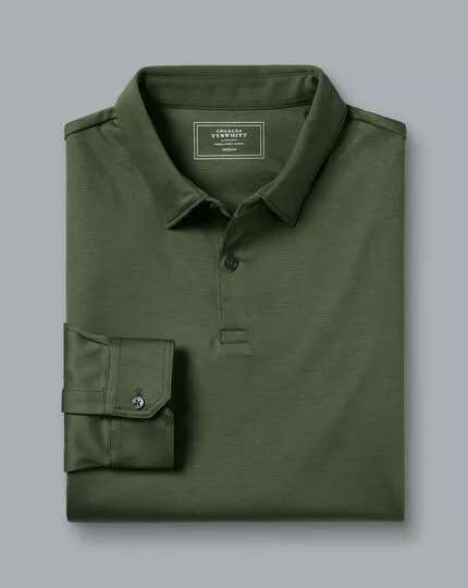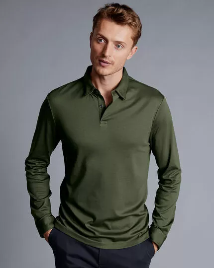 CHARLES TYRWHITT Smart Long Sleeve Jersey Polo – Olive Green